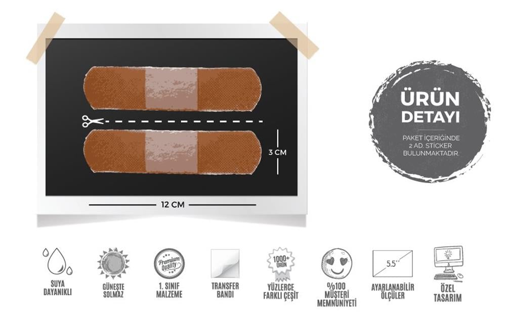 Stickerın Ölçüleri : 12 cm (Genişlik) x 3 cm (Yükseklik) Ölçüler tek bir yarabandının ölçüsüdür.