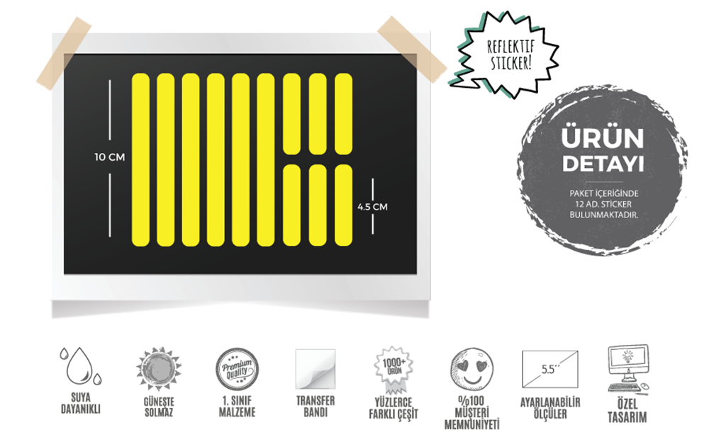 4.5cm x 1cm ölçülerinde 6 adet reflektif şerit