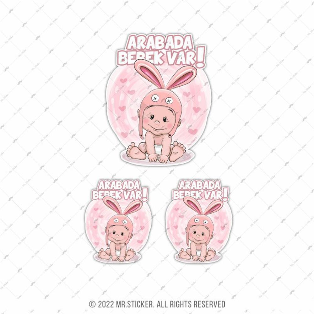 BOB21 Tavsan Sapkali Arabada Bebek Var Etiketi 3'lü Set