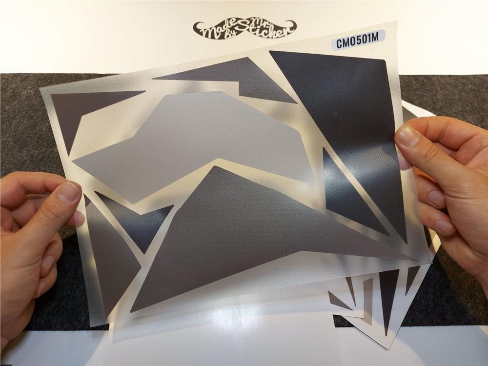 • Parçaların her biri makinede hassas kesilmiş, transfer bandına alınmıştır. Parçaları makas ile keserek birbirinden ayırmanız yeterlidir. Kaplama yapılacak alanın büyüklüğü, uygulama sıklığına göre değişmektedir. Çoğu müşterimiz, motosiklet uygulamalarında 2 set satın almayı tercih etmektedir.