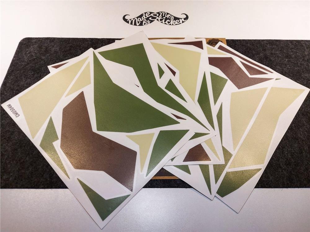 ⚠️ Bu set tek parça folyo değildir, yeşil, kahverengi, açık yeşil renklerinde 45 adet üçgen (ve benzeri) şekilden oluşmaktadır. Uygulanacak zeminin üzerini tamamen kaplamak (tamamen renk değiştirmek) için kullanılamaz.