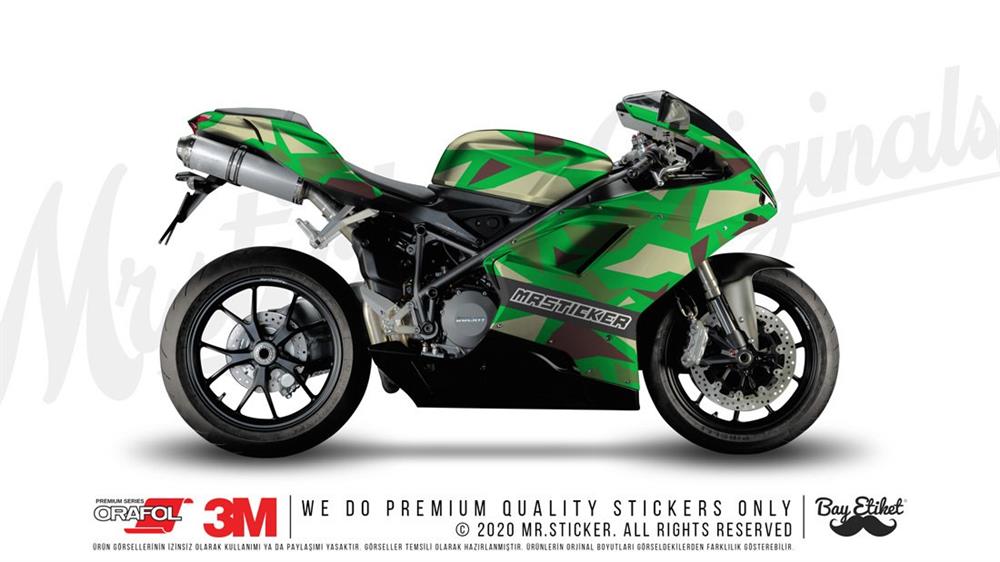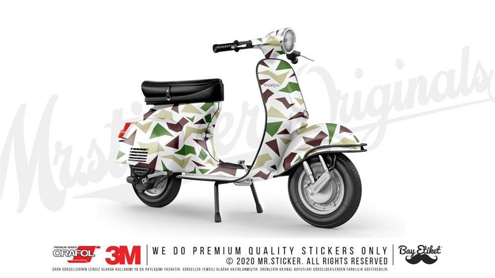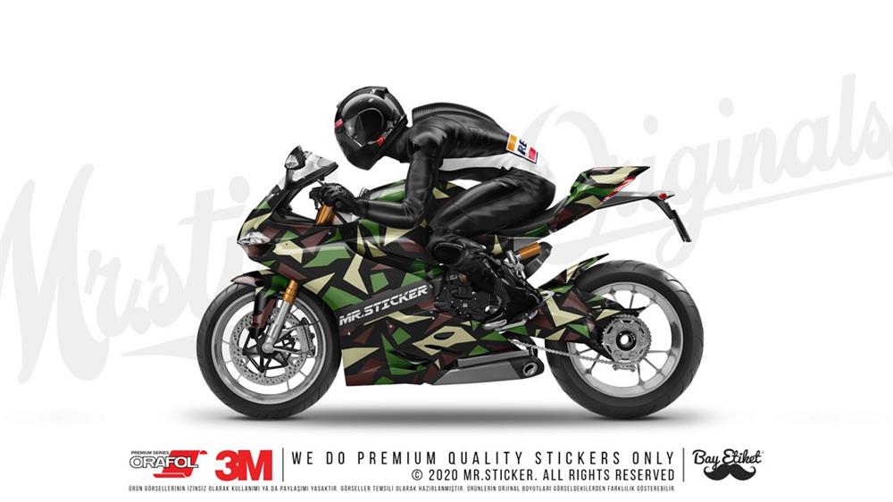 • Bu set ölçüleri gereği, motosiklet ve benzeri yüzeylere uygulama yapmak için daha uygundur. Kamuflaj parçaları araba için biraz küçük, kask ve benzeri yüzeyler için ise büyük olabilir.