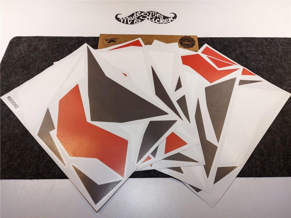 ⚠️ Bu set tek parça folyo değildir, beyaz, kırmızı, füme renklerinde 45 adet üçgen (ve benzeri) şekilden oluşmaktadır. Uygulanacak zeminin üzerini tamamen kaplamak (tamamen renk değiştirmek) için kullanılamaz.