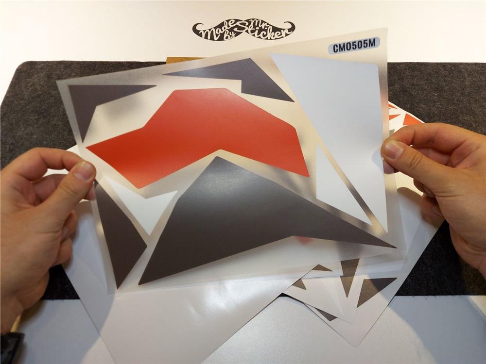 • Parçaların her biri makinede hassas kesilmiş, transfer bandına alınmıştır. Parçaları makas ile keserek birbirinden ayırmanız yeterlidir. Kaplama yapılacak alanın büyüklüğü, uygulama sıklığına göre değişmektedir. Çoğu müşterimiz, motosiklet uygulamalarında 2 set satın almayı tercih etmektedir.