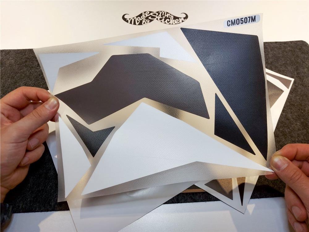 • Parçaların her biri makinede hassas kesilmiş, transfer bandına alınmıştır. Parçaları makas ile keserek birbirinden ayırmanız yeterlidir. Kaplama yapılacak alanın büyüklüğü, uygulama sıklığına göre değişmektedir. Çoğu müşterimiz, motosiklet uygulamalarında 2 set satın almayı tercih etmektedir.