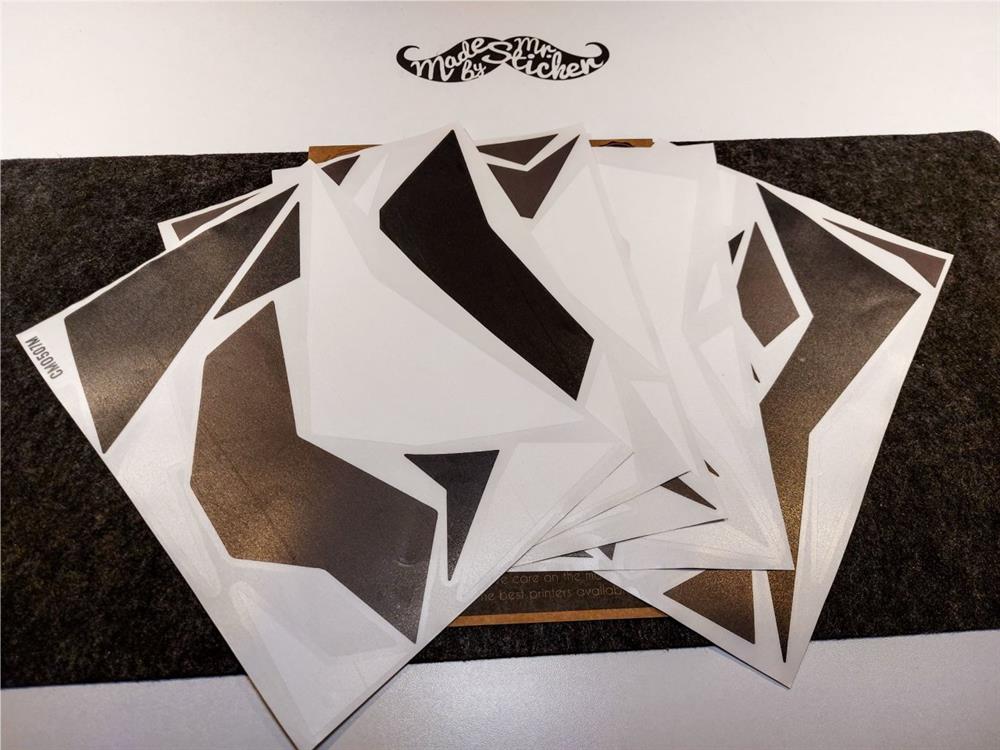 ⚠️ Bu set tek parça folyo değildir, siyah, beyaz, füme renklerinde 45 adet üçgen (ve benzeri) şekilden oluşmaktadır. Uygulanacak zeminin üzerini tamamen kaplamak (tamamen renk değiştirmek) için kullanılamaz.