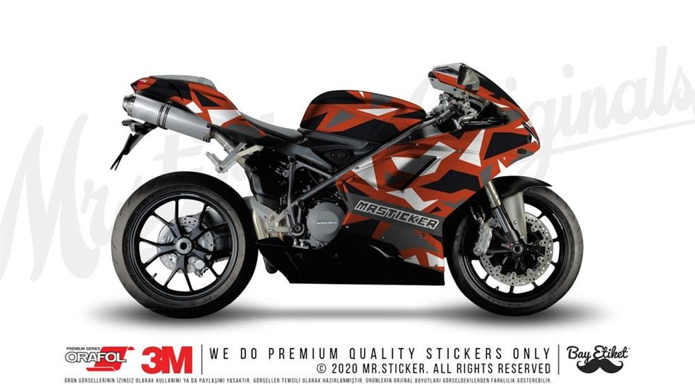 • Bu set ölçüleri gereği, motosiklet ve benzeri yüzeylere uygulama yapmak için daha uygundur. Kamuflaj parçaları araba için biraz küçük, kask ve benzeri yüzeyler için ise büyük olabilir.