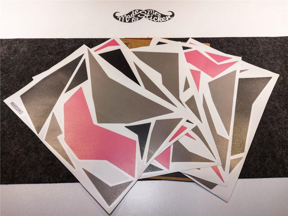 ⚠️ Bu set tek parça folyo değildir, siyah, fuşya, füme renklerinde 45 adet üçgen (ve benzeri) şekilden oluşmaktadır. Uygulanacak zeminin üzerini tamamen kaplamak (tamamen renk değiştirmek) için kullanılamaz.