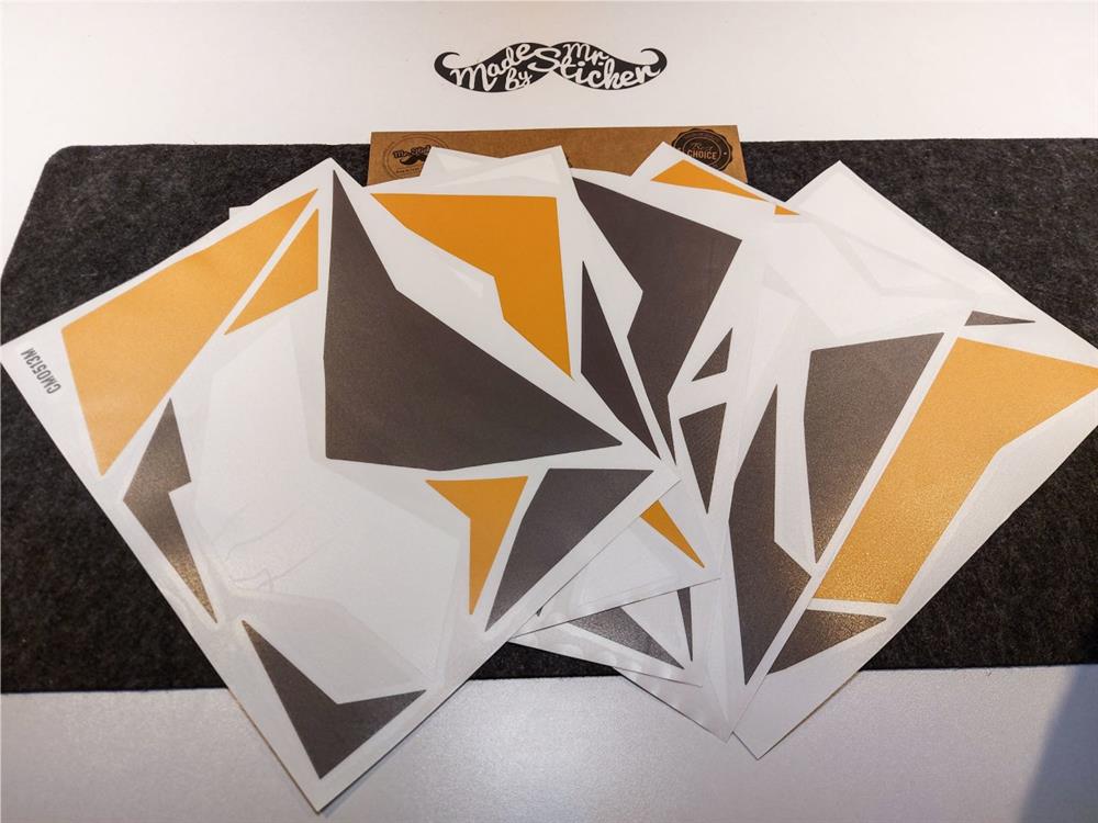 ⚠️ Bu set tek parça folyo değildir, turuncu, beyaz, füme renklerinde 45 adet üçgen (ve benzeri) şekilden oluşmaktadır. Uygulanacak zeminin üzerini tamamen kaplamak (tamamen renk değiştirmek) için kullanılamaz.