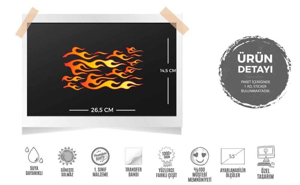 Stickerın Ölçüleri : 26.5 cm (Genişlik) x 14.5 cm (Yükseklik) *Paket içeriğindeki tüm parçaların bir aradaki ölçüsüdür