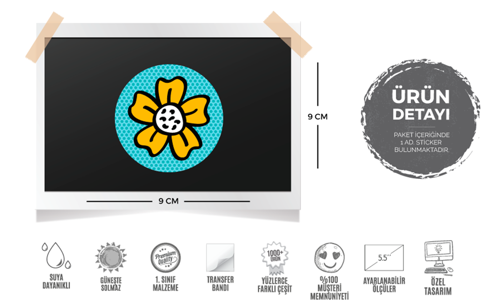 Stickerın Ölçüleri : 9 cm (Genişlik) x 9 cm (Yükseklik)