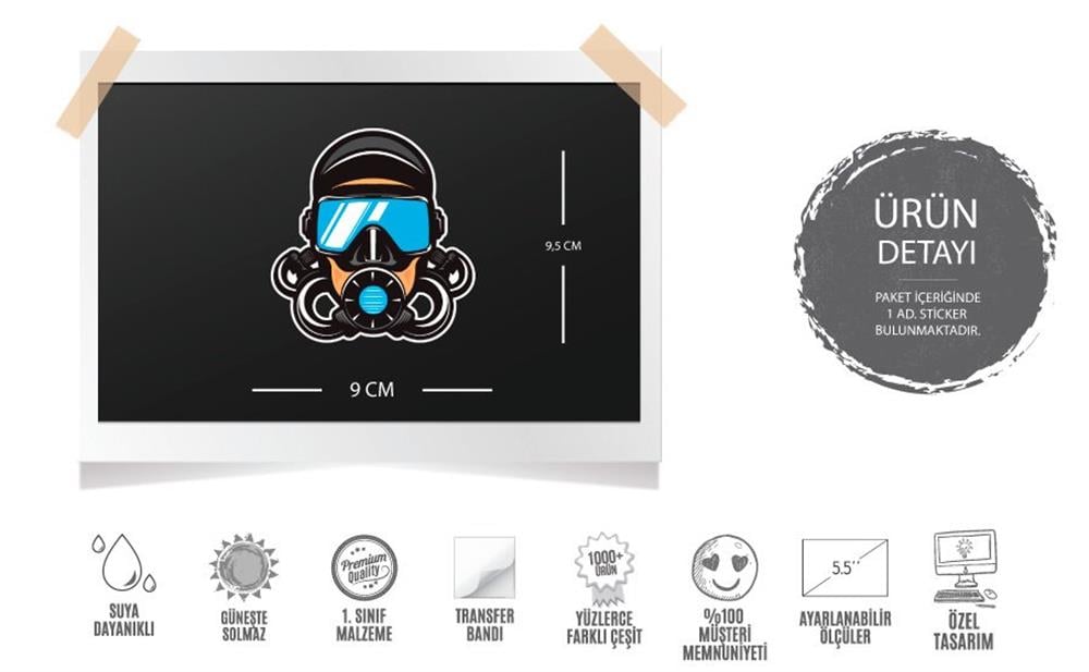 Stickerın Ölçüleri : 9 cm (Genişlik) x 9.5 cm (Yükseklik)