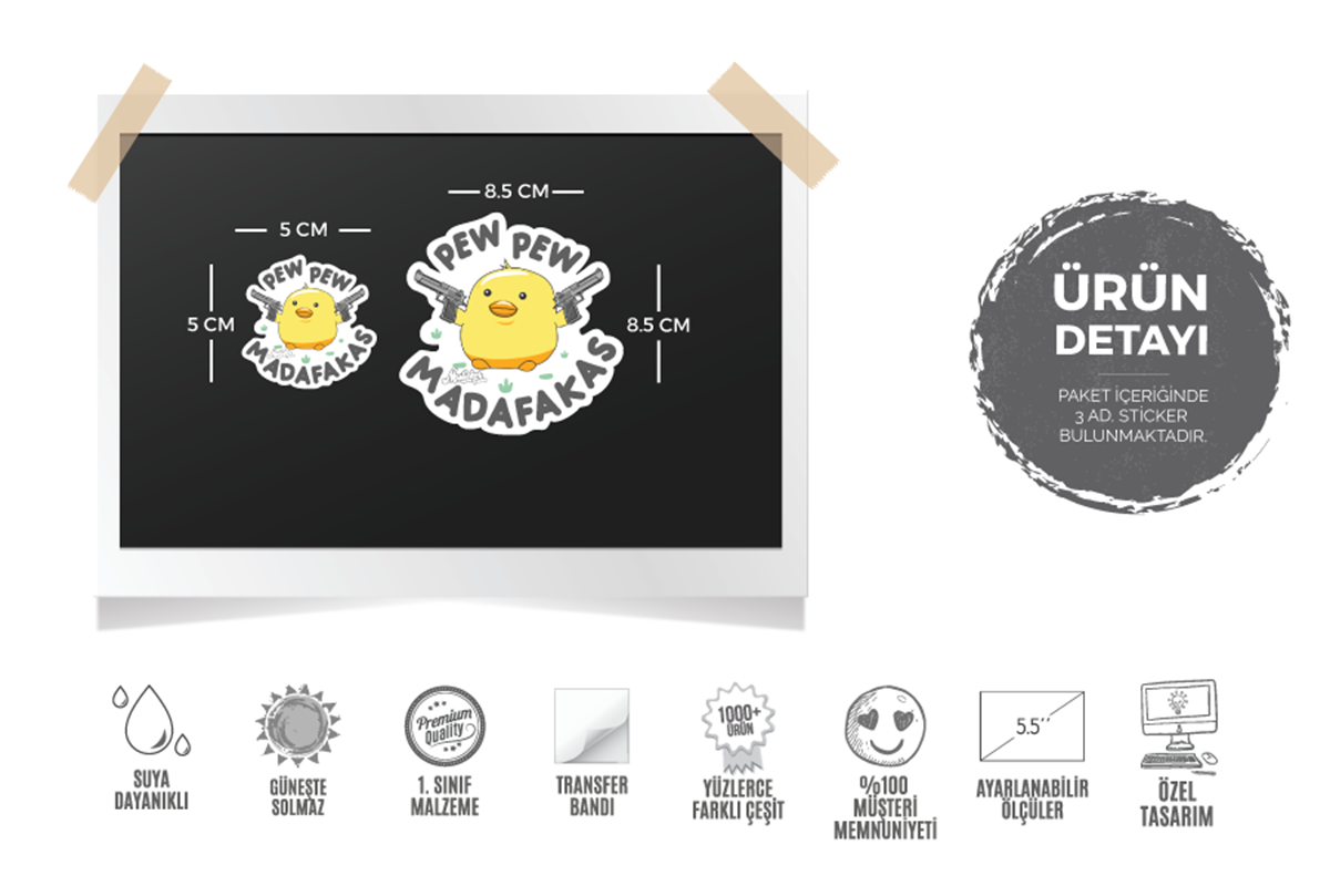 Büyük Boy Sticker: 8.5 cm (Genişlik) x 8.5 cm (Yükseklik) 1 adet