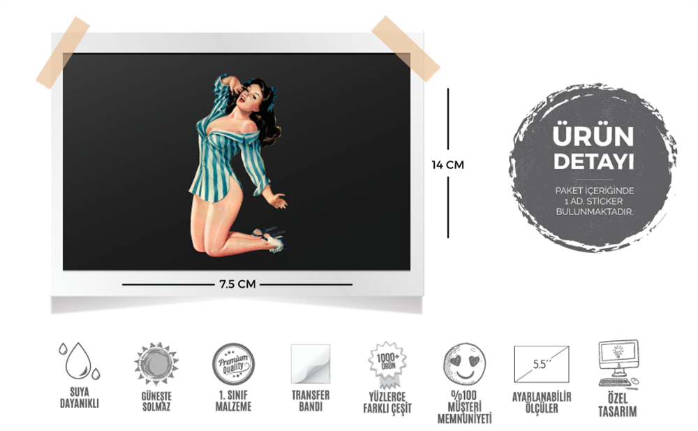 Stickerın Ölçüleri : 7.5 cm (Genişlik) x 14 cm (Yükseklik)