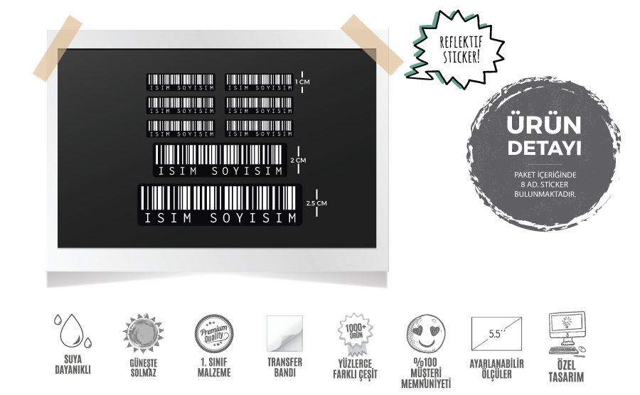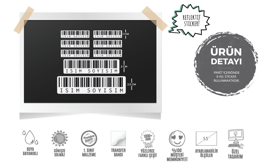 * Paket içeriğinde 8 ad. etiket bulunmaktadır. Lütfen uygulamadan önce paketin arkasındaki uygulama talimatlarını okuyunuz. Bu ürün görsel amaçlıdır, barkod makineleri tarafından fiziksel okunmayabilir.
