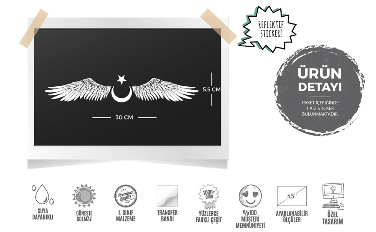 Stickerın Ölçüleri : 30 cm (Genişlik) x 5.5 cm (Yükseklik)