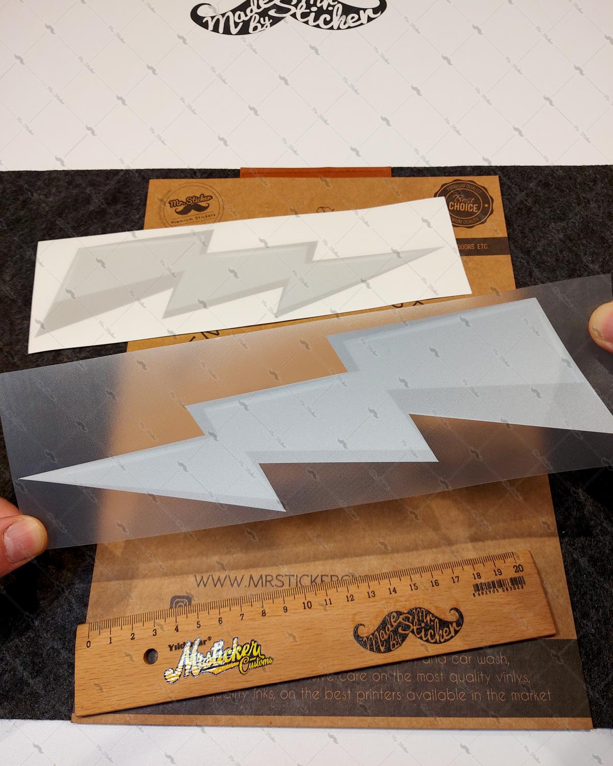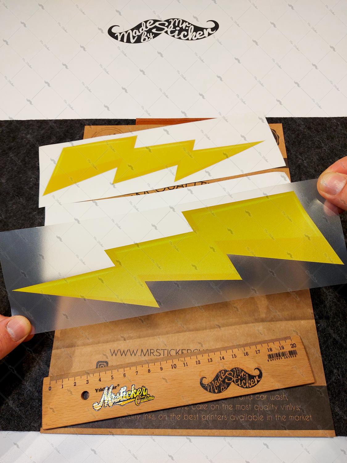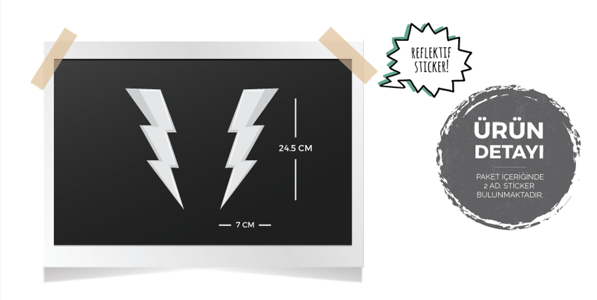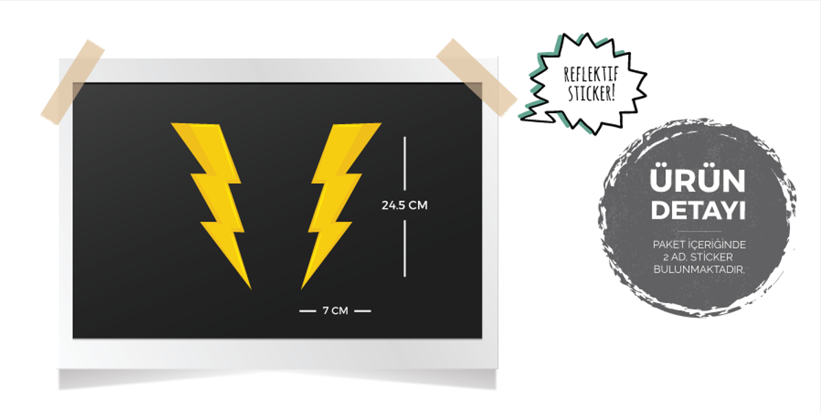 Stickerın Ölçüleri : 24.5 cm (Genişlik) x 7 cm (Yükseklik) Bir yıldırımın ölçüleridir.