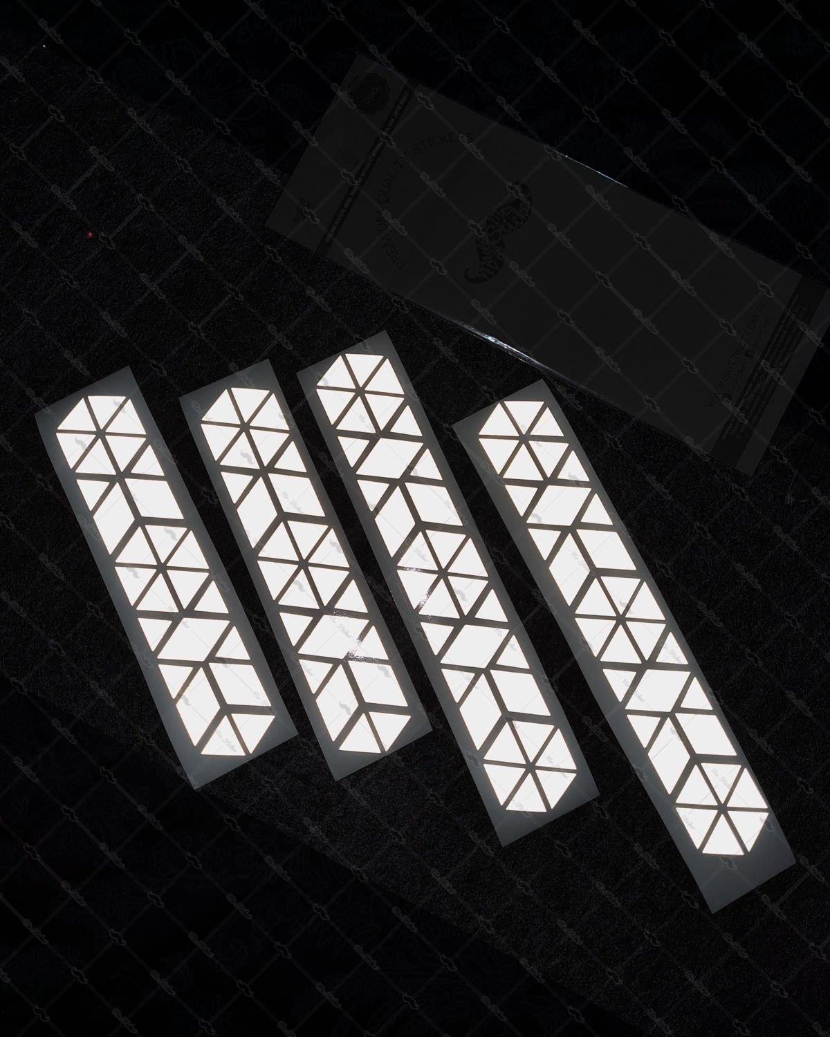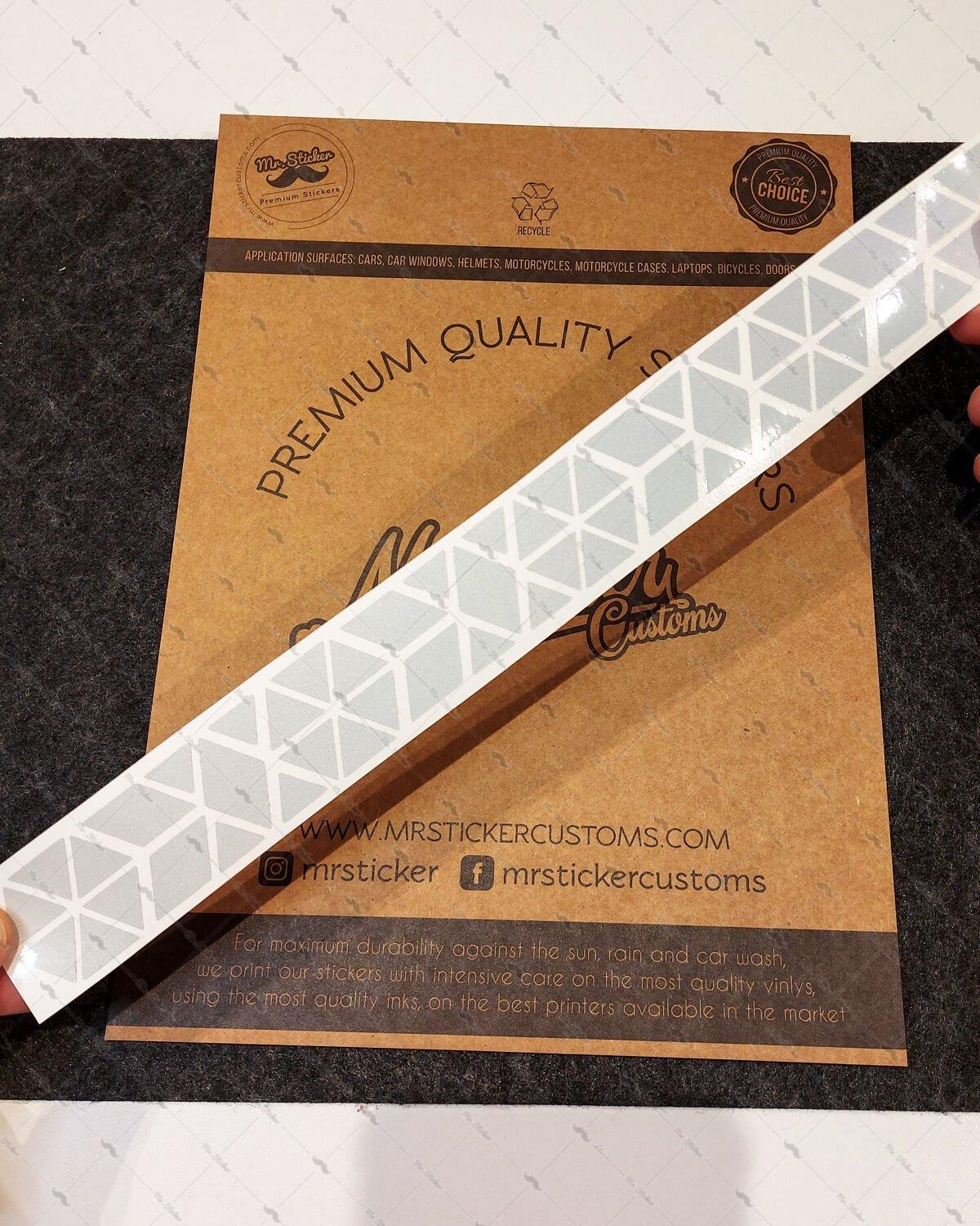 Ölçüleri 1.5 cm ile 4 cm arasında değişen toplamda 110 parça reflektif üçgenler