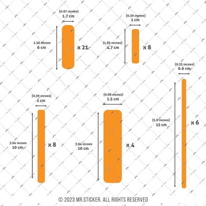 1.7 cm (Genişlik) x 6 cm (Yükseklik) 21 adet