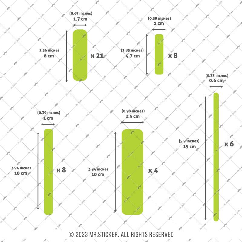 1.7 cm (Genişlik) x 6 cm (Yükseklik) 21 adet