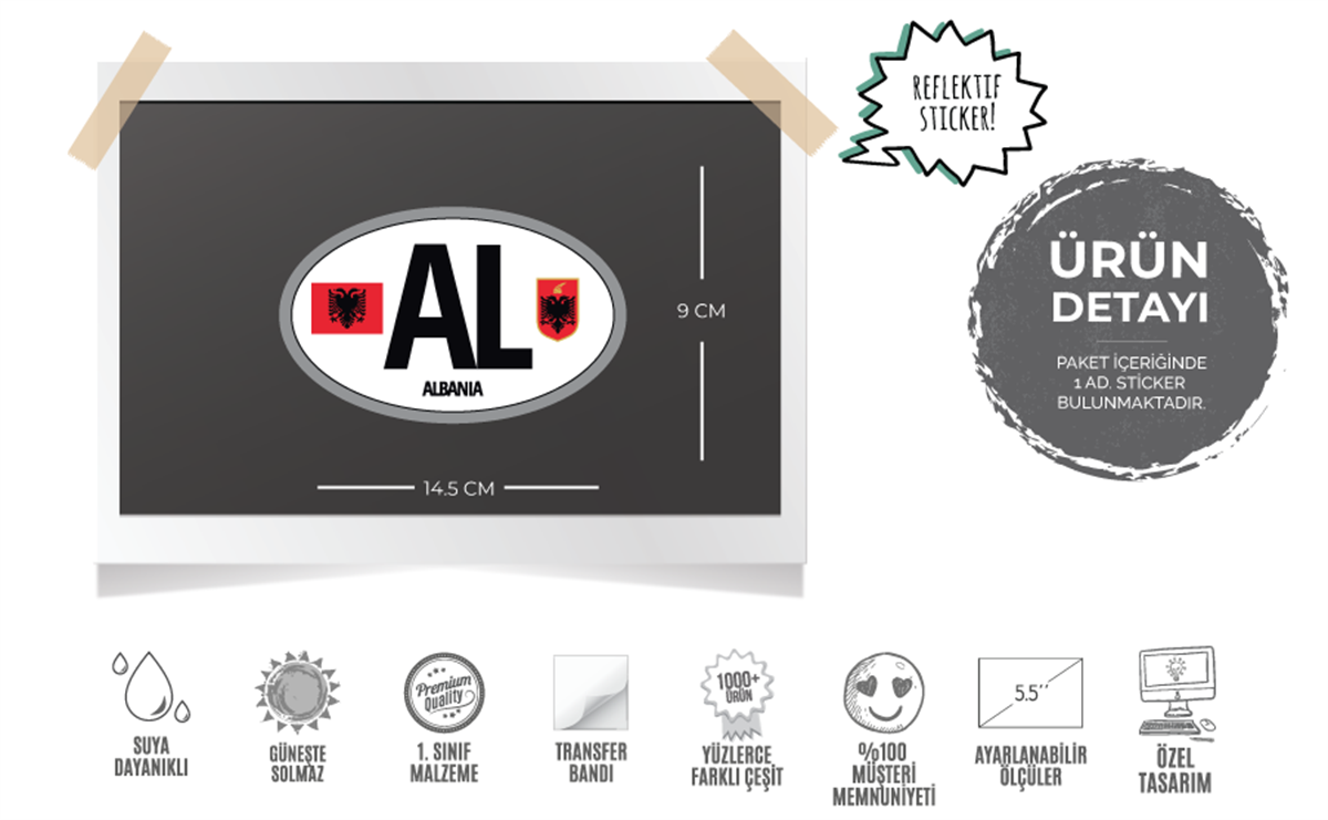 ULK23 Arnavutluk (AL) Reflektif Ulke Etiketi