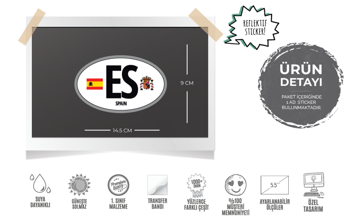ULK52 Ispanya (ES) Reflektif Ulke Etiketi