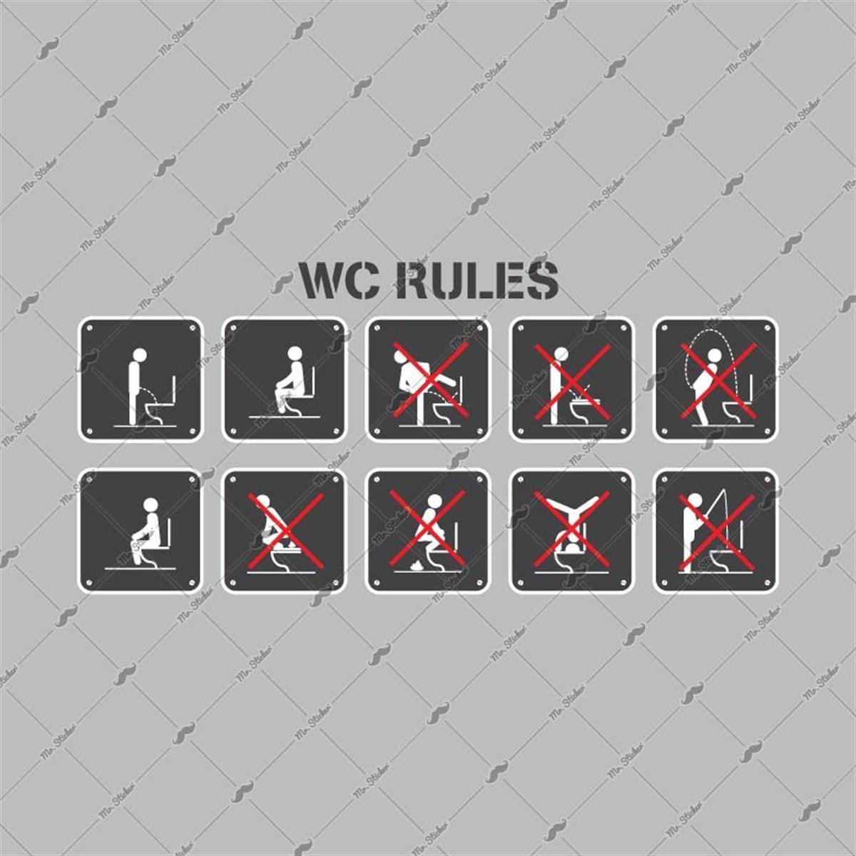* Paket içeriğinde 1 ad. "WC Rules" yazısı ve 10 ayrı parçadan oluşan WC simgeleri olmak üzere toplam 11 etiket bulunmaktadır. Lütfen uygulamadan önce paketin arkasındaki uygulama talimatlarını okuyunuz.