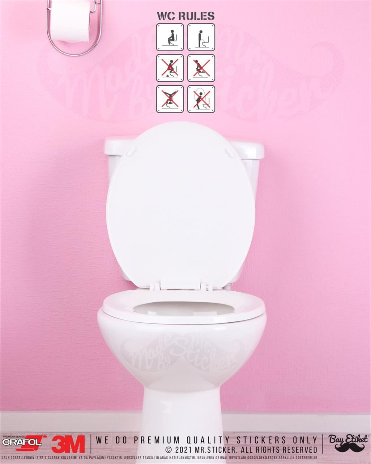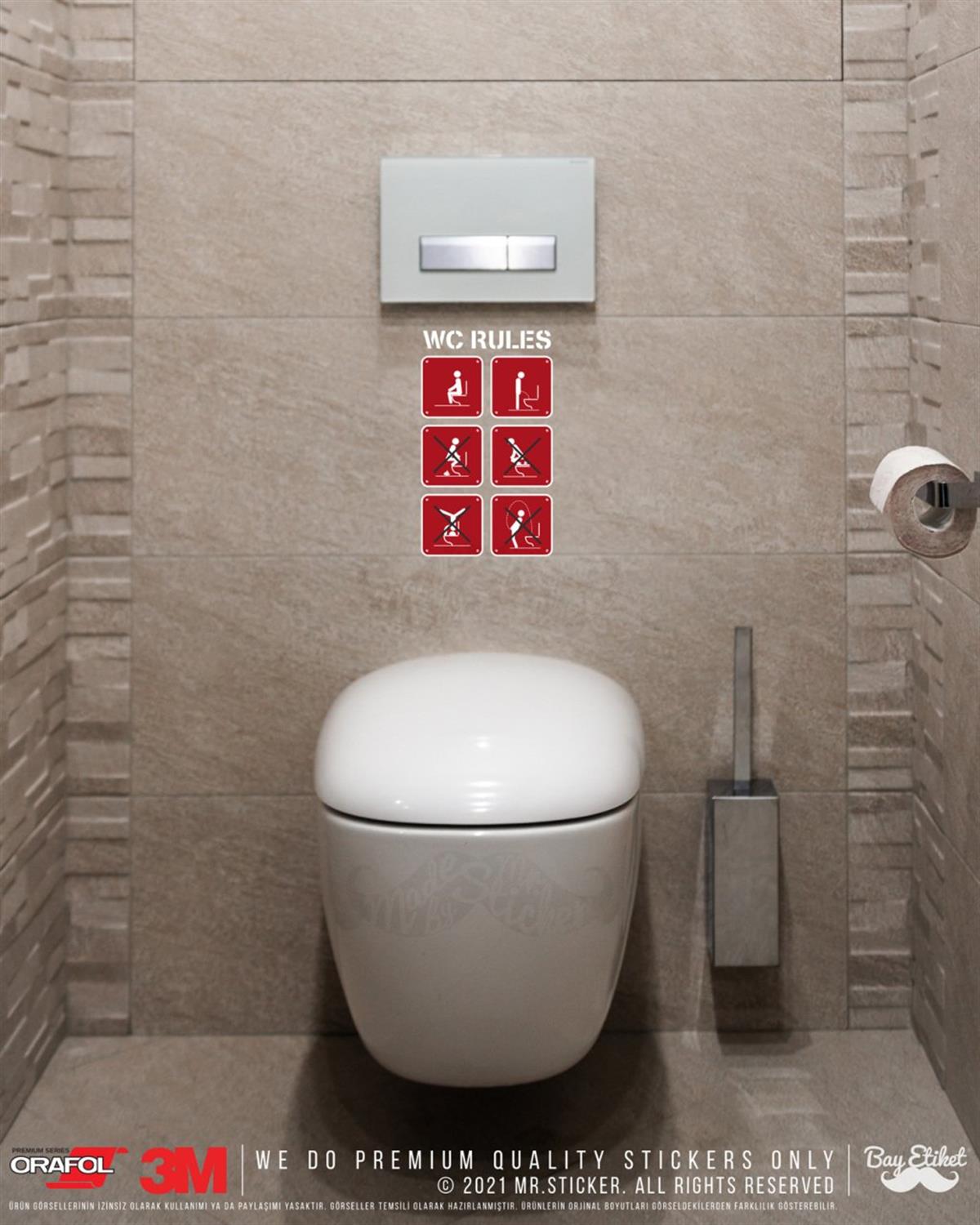 * Paket içeriğinde 1 ad. "WC Rules" yazısı ve 6 ayrı parçadan oluşan WC simgeleri olmak üzere toplam 7 etiket bulunmaktadır. Lütfen uygulamadan önce paketin arkasındaki uygulama talimatlarını okuyunuz.