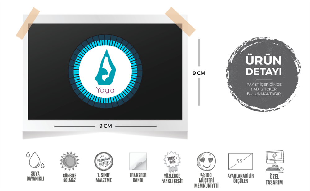 Stickerın Ölçüleri : 9 cm (Genişlik) x 9 cm (Yükseklik)