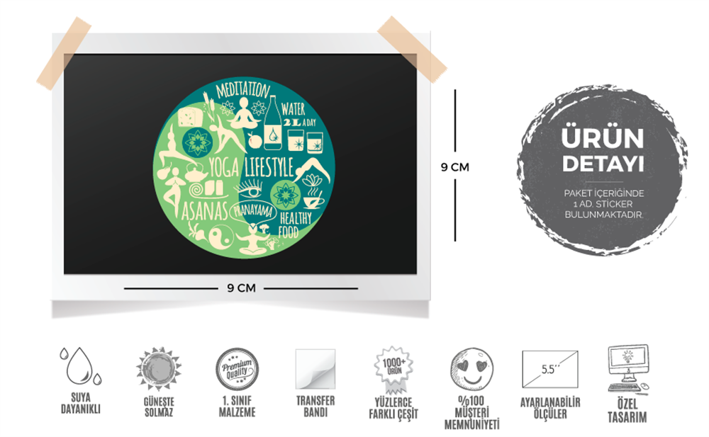 Stickerın Ölçüleri : 9 cm (Genişlik) x 9 cm (Yükseklik)